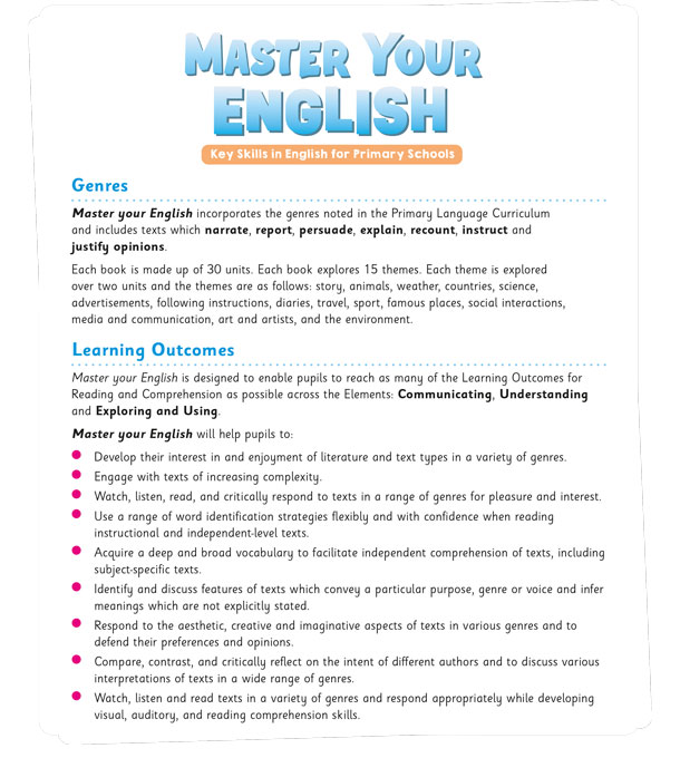 More DetailsMaster your English is a new and innovative English programme for primary schools. Its unique approach focuses on building comprehension and vocabulary skills.